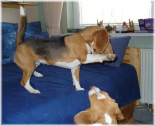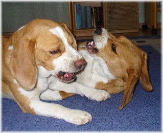 "Karis" ist die erste Tochter unseres Quincys und ist als Junghund im Alter von 5 Monaten zu uns gekommen. Sie wurde quasi sofort von der Meute akzeptiert (vielleicht liegt es ja daran, dass sie ihren Vater nicht verleugnen kann ;-))und zeigt sich absolut selbstsicher, offen und aufgeschlossen. Neugierig, verspielt und total charmant kommt sie daher und wickelt jeden um den Finger. Sie besticht durch ihre ganze Art: ziemlich cool und ausgeglichen, freundlich (oft im Überschwang), sanft, immer zum Schmusen bereit und wunderbar leichtführig auf der einen Seite ... Auf der anderen Seite für jeden Blödsinn zu haben und fantastisch zu motivieren. Leider wird sie ihr tolles Wesen nie an Nachkommen weitergeben können, da ihre Hüftgelenke auf dem Röntgenbild nicht korrekt genug ausgebildet sind, um mit ihr zu züchten. Kaum vorstellbar bei so einem bewegungsfreudigem Hund wie Karis. Schweren Herzens haben wir uns von ihr getrennt... Sie läßt ihren Charme nun in Berlin bei Halbschwester Elli (Luck Devil's Arizona Dream), zwei Katzen und den zugehörigen Zweibeinern spielen. Wir sind froh zu wissen, dass sie es gut getroffen hat. | |||||||||||||||||||||||||||||||||||||||||||||||||||||||||||||||||||||||||||||||||||||||