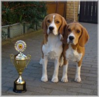 31.10.2009 BCD Schussfestigkeits- und Spurlautprüfung in Nortorf: 3 Beagle sind zu dieser Prüfung angetreten, darunter auch LD Coldplay (Cody) und LD Crystal Palace (Cim) (siehe C-Wurf). Alle Teilnehmer haben die Schussfestigkeitsprüfung mit Bravour bestanden; dazu auch herzlichen Glückwunsch an Quincys Enkel Quintino. Nach dem Schießen ging es auf die Felder und Wiesen. 7 Hasen konnten insgesamt hochgemacht werden. Cody und Cim, noch nicht ganz 7 Monate alt, brauchten jeweils nur einen, um mit einem 1. Preis die Spurlaut prüfung zu bestehen. Cody's Arbeit wurde mit 92 Punkten bewertet. Für Cim war es sogar die erste Hasenspur überhaupt und ihre Leistung überzeugte die Richter so, dass es mit vollen 100 Punkten den Tagessieg gab. Wir sind natürlich sehr stolz auf die beiden "Kleinen" und gratulieren den Besitzern. | |||||||||||||||||||||||||||||||||||||||||||||||||||||||||||||||||||||||||||||||||||||||||||||||