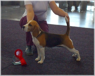 Wiedermal liegt ein aufregendes Wochenende hinter uns. Die CAC-Schau der Landesgruppe Niedersachsen war angesagt und wir waren ohne große Erwartungen hingefahren. Die Richterin Denise Wegmann aus der Schweiz war uns bisher nur namentlich ein Begriff. Aber da wir ja den Wanderpokal für den "Best Puppy", den Arsenal letztes Jahr gewonnen hatte, zurück bringen mussten und so auch mal wieder ein Wochenende in Peine bei Alex verbringen konnten, hatte ich gemeldet. Klar ... Klein Beamie sollte erste Ringerfahrungen machen, ohne Chari fahren wir nicht zu Alex, also geht sie an den Start und Quincy? na ja, kommt er halt auch mal wieder mit, schließlich hatten wir ihn dieses Jahr erst zweimal gezeigt. Soviel zur Vorgeschichte. Heute einen Tag danach kann ich nur sagen: Das bisher ABSOLUT BESTE Ausstellungswochenende liegt hinter uns, ein kleiner Traum ging in Erfüllung: von 80 gemeldeten Beagles gewinnt Quincy das BOB, sein (und unser) erstes überhaupt. Beamie rundet die Sache ab, indem sie den "Best Puppy" für die Luck Devil's verteidigt und einen tollen Richterbericht >>> erhält. Auch alle anderen Ergebnisse waren mehr als zufrieden stellend. Charisma erhält in der offenen Klasse der Hündinnen ein V. Und auch Quincys Söhne Luck Devil's Mr. Anderson (V in der Zwischenklasse) und Kir Kaiba from Heath Paradise (V 2 VDH-Cha-Res. in der Gebrauchshundklasse) haben sich wacker geschlagen. Weiterhin gratulieren wir Alex zum gelungenen Ausstellungsdebüt mit ihrer Falbala (die von Beamie so manchen Unfug lernen konnte ;-)). An dieser Stelle auch ein großes Dankeschön an die Landesgruppe Niedersachsen, die trotz aller Widrigkeiten, eine rundum gelungene Show über die Bühne gebracht hat. Wir fahren nächstes Jahr sicher wieder gerne hin. | |||||||||||||||||||||||||||||||||||||||||||||||||||||||||||||||||||||||||||||||||||||||||||||||