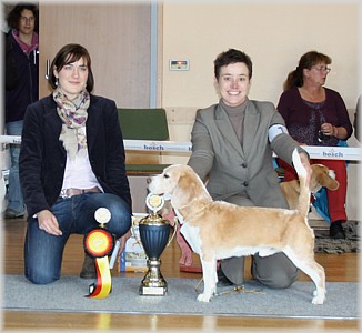 Das neue Ausstellungsjahr fängt sehr gut für uns an: In Nürnberg erhalten Beamie >>> und Yucca >>> vom Richter Herr Dr. Beyersdorf jeweils das V 1 VDH-Cha ihrer Klasse; Yucca wird dann noch zweitbeste Hündin (Res-CAC und Res-CACIB)! |